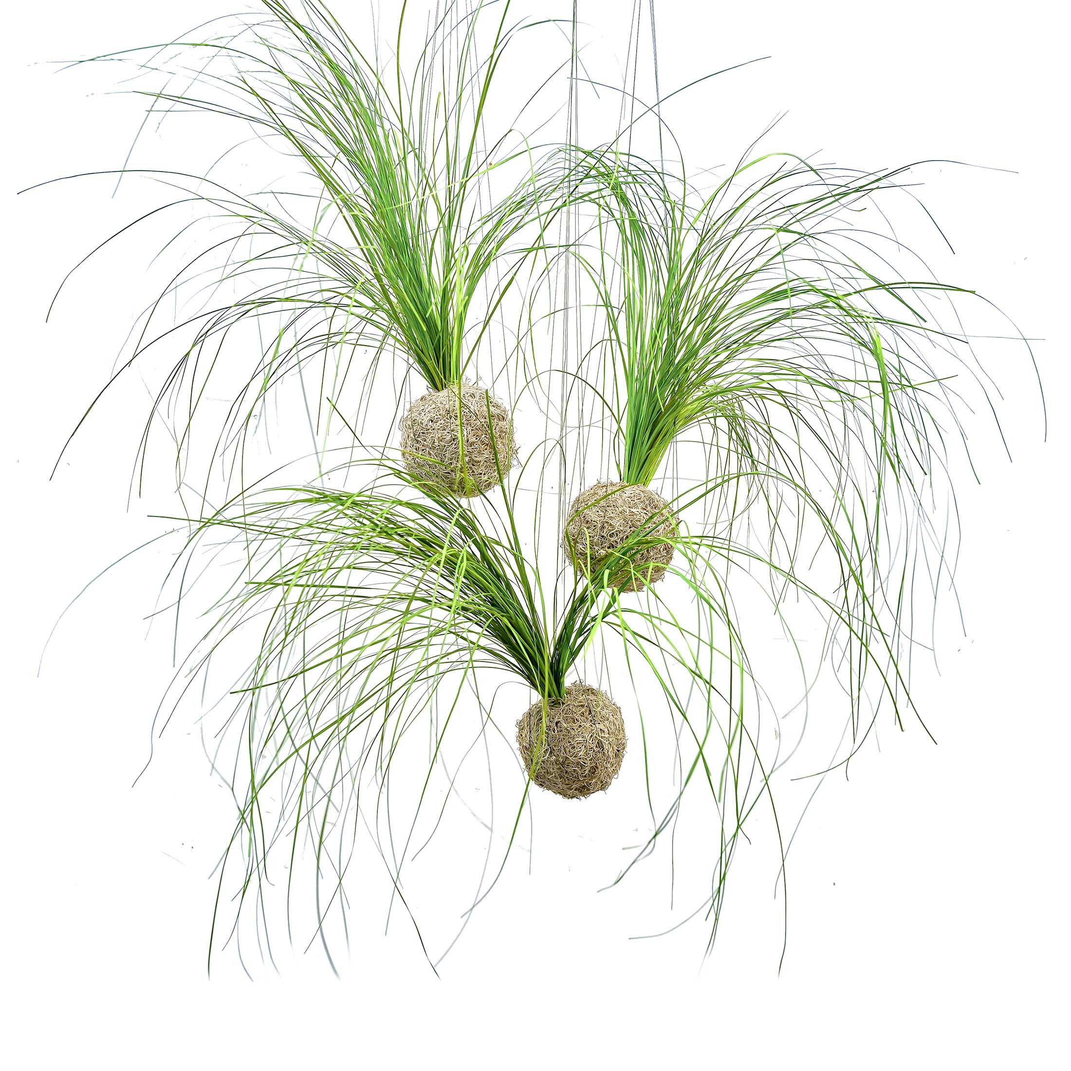 Set Of 3 Care Free Real Preserved Grass Kokedama Hanging Etsy